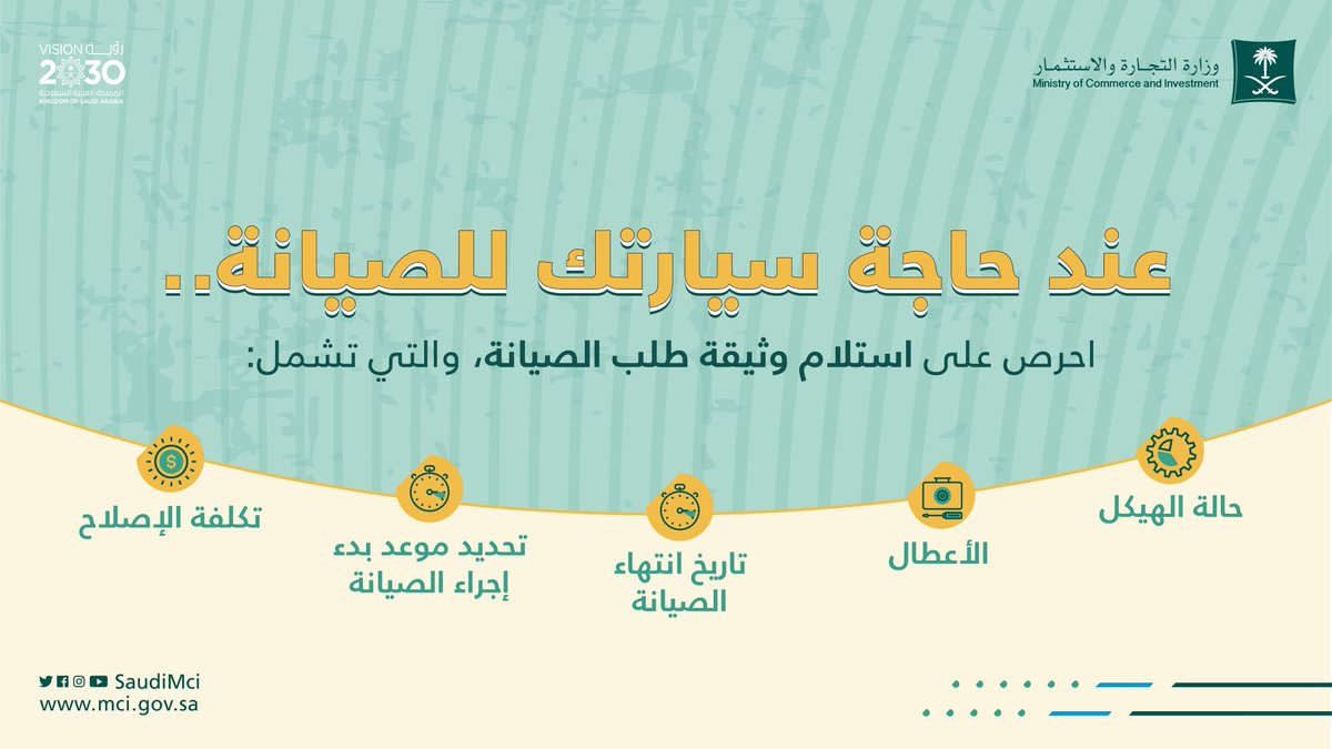 عند حاجة سيارتك للصيانة، احرص على استلام وثيقة طلب الصيانة والتي تشمل هذه النقاط ?