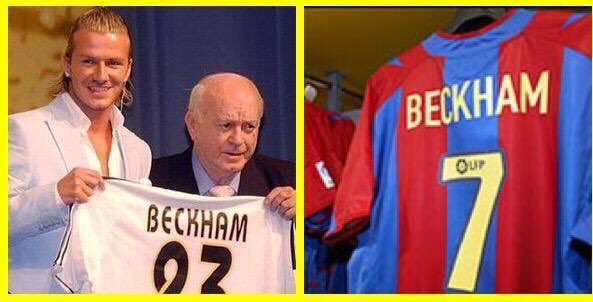 في عام 2003 قام برشلونة ?? بعرض قمصان بيكهام ?? في متاجر النادي قبل أن يتفاجؤوا بتوقيعه للغريم التقليدي ريال مدريد