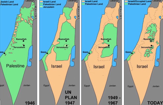 وأصبحت المساحة التي يسيطر عليها الاسرائليين حاليا قرابة 70٪ من اراضي فلسطين