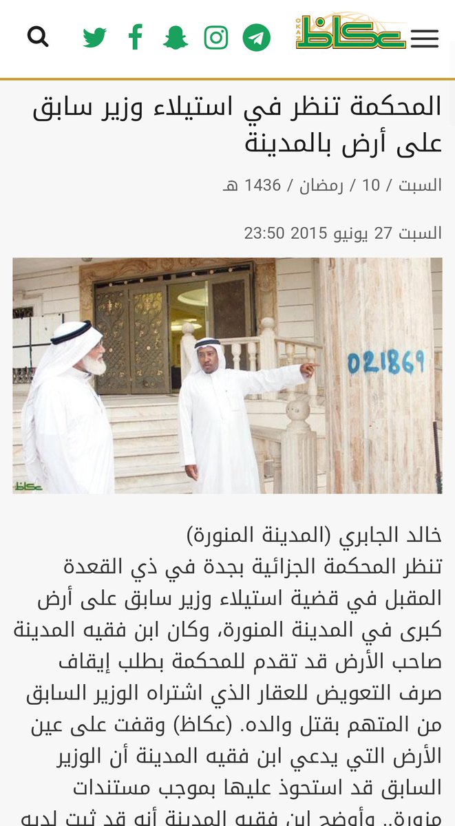 2015م نشر عن قضية تورط وزير في حصول امام مسجد وافد على