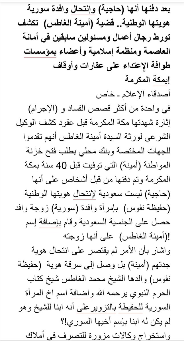 تورط رجال أعمال في الاعتداء على #أوقاف_الله مكة المدينة جدة ب #صكوك_مزورة وانتحال هويات وأنساب!