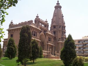 2-وزخرفه Georges-Louis Claude جورج لويس كلود (1879-1963)واكتمل البناء عام 1911شيده المليونير البلجيكي البارون ادوارد إمبان(20 سبتمبر 1852 -22يوليو 1929)والذي جاء إلى مصر من الهند نهاية القرن التاسع عشر بعد افتتاح قناة السويس حيث بقى في مصر واختار مكاناً صحراوياً لبناء قصره