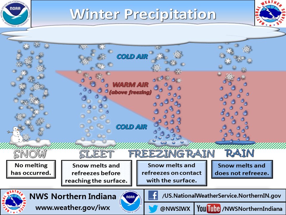 تحت هذه التغريدة ومن باب الثقافة الطقسية سأتحدّث بشكل مبسط عن الفرق بين أنواع التساقط المُثلّج وهي كالتالي: