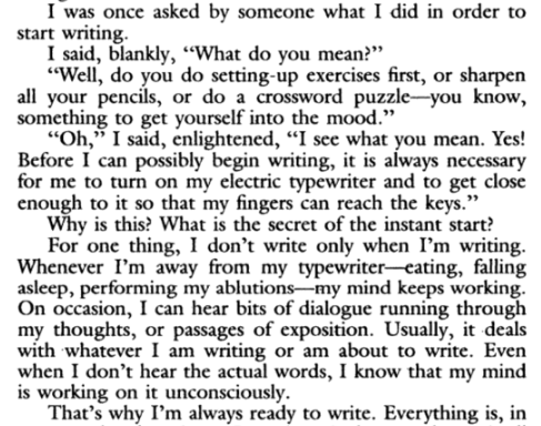 ثالثا، أنه استطاع تجنب ما يعرف بقفلة الكتابة، عندما يفقد الكاتب الرغبة أو القدرة على كتابة أي كلمة في مشروعه. فكيف تجنب أزيموف ذلك؟ ببساطة ينتقل لكتابة كتب أخرى ريثما يتجدد نشاطه النفسي وحيويته الذهنية لإكمال مشروعه السابق، خلال تلك الفترة يكون عقله الباطن قد تفتق بأفكار جديدة.