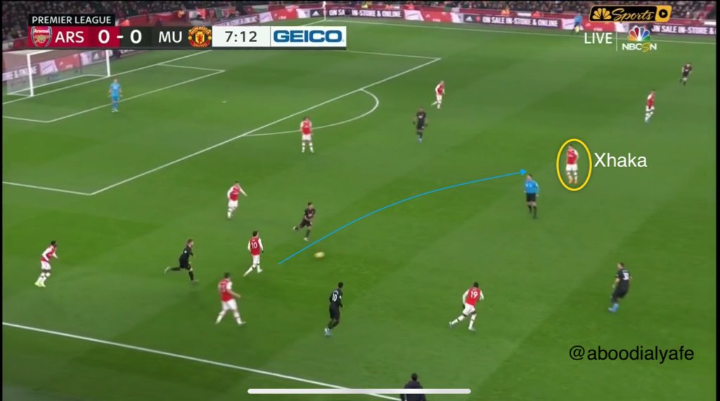 نشاهد أن ”أوزيل يمرر لتشاكا” #تشاكا في جزء من الثانية وبلمسة واحدة إستطاع ضرب وسط مانشستريونايتد.