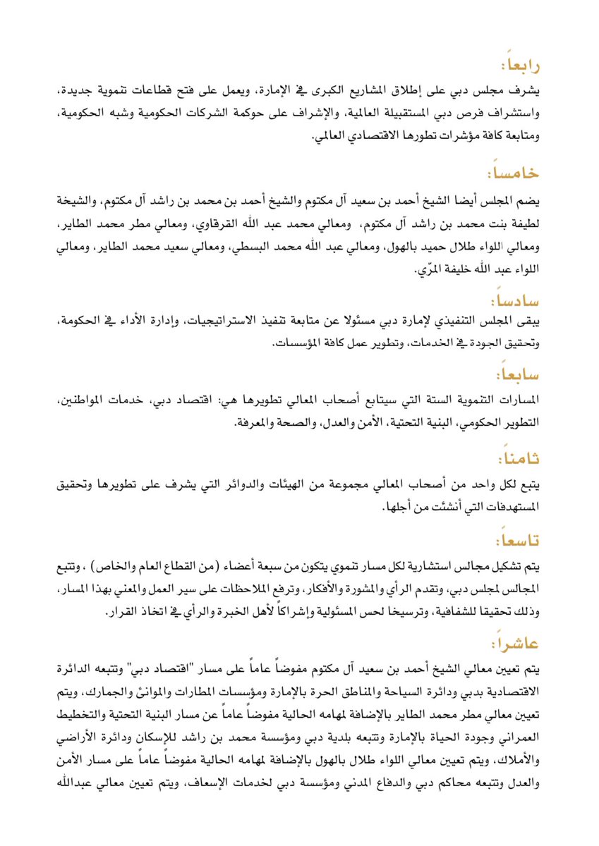 3. جميل هو التشكيل الذي راهن على روح الشباب عبر إعتماد @HHShkMohd على نائبيه الأول @HamdanMohammed والثاني @MaktoumMohammed وضم @LatifaMRM و@HHAhmedBinSaeed وكوكبة من رجالات #دبي من ذوي الخبرة والإنجاز وآخرين من ذوي الروح الشابة والقدرة على العطاء، إختيارات موفقة مشهود لها.