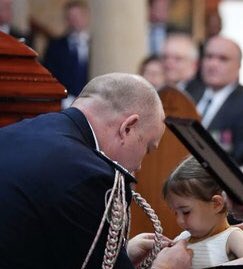 للطفلة "شارلوت" التي لاتعرف ان التابوت خلفها يرقد فيه أبيها الذي فقدته في حرائق الغابات أثناء محاولات الإطفاء،تم تقليد أبنته وسام الشجاعة نظير عمل أبيها البطولي في مكافحه الحرائق..