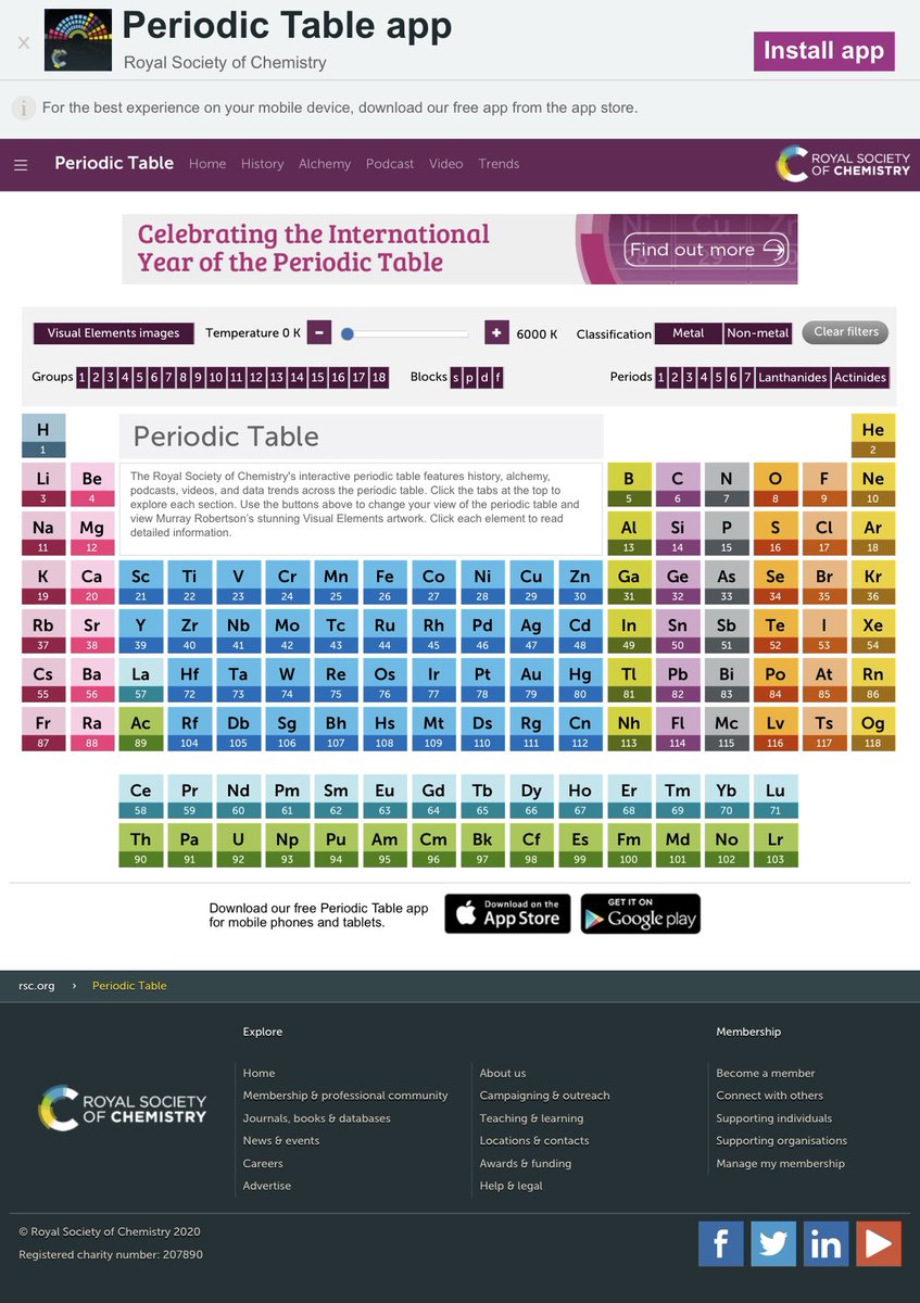 2️⃣ أيضا يوفر الموقع تصميم تفاعلي لعناصر #الجدول_الدوري فعند اختيار احد العناصر بإمكانك استعراض معلومات عن تاريخ اكتشافه، خواصه، استخداماته