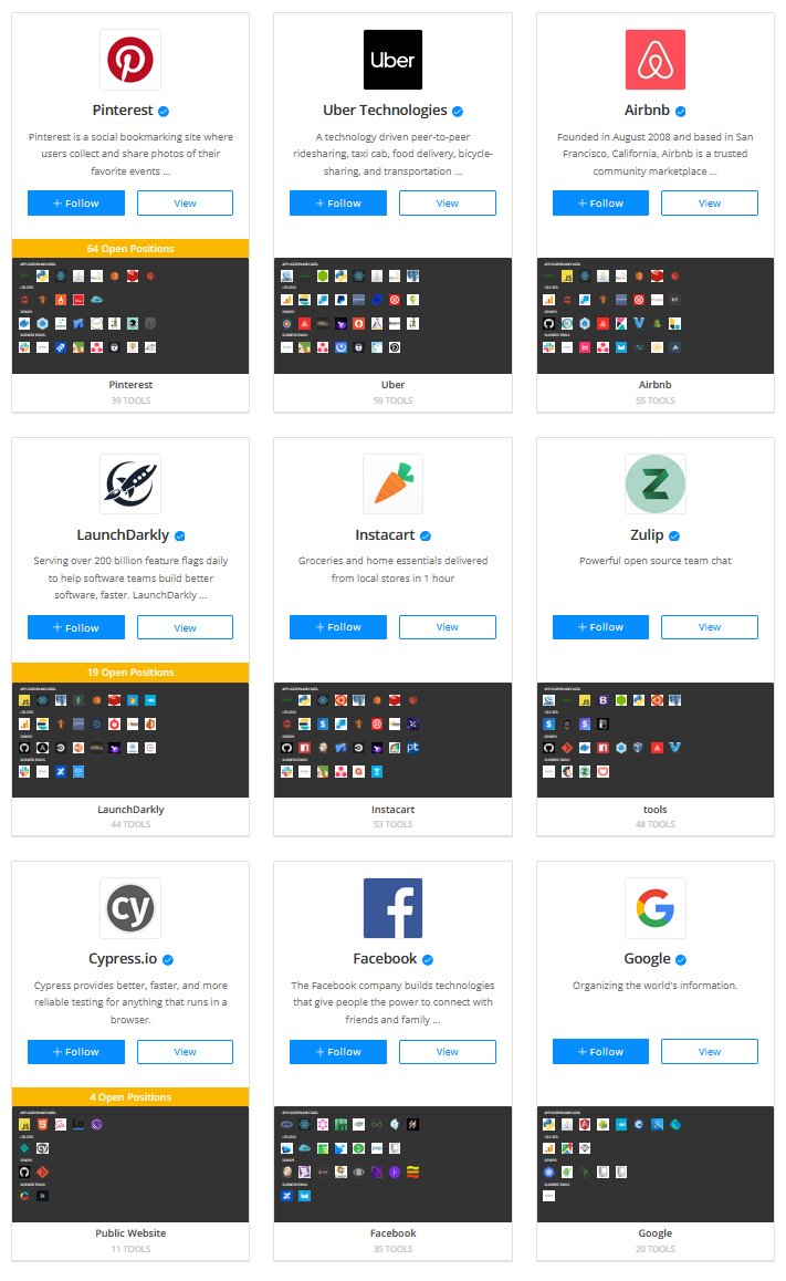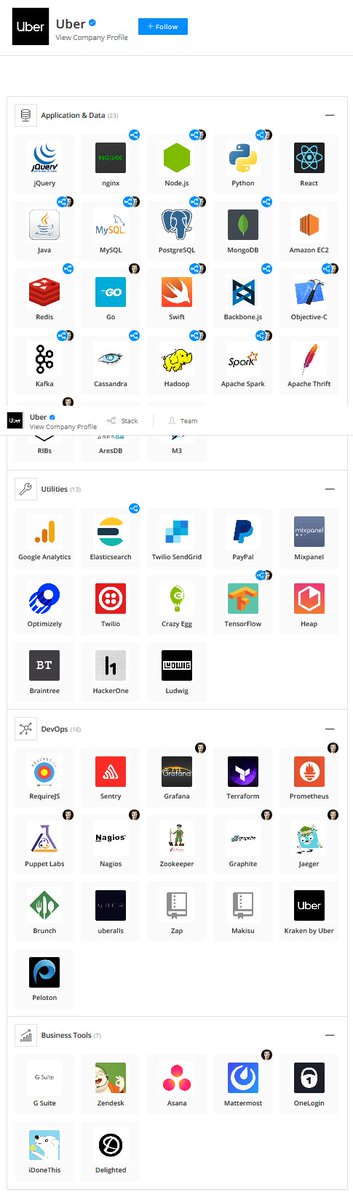 موقع stackshare.io يوفر لنا الإجابة بعرض التقنيات والأدوات المستخدمة في كبرى الشركات.