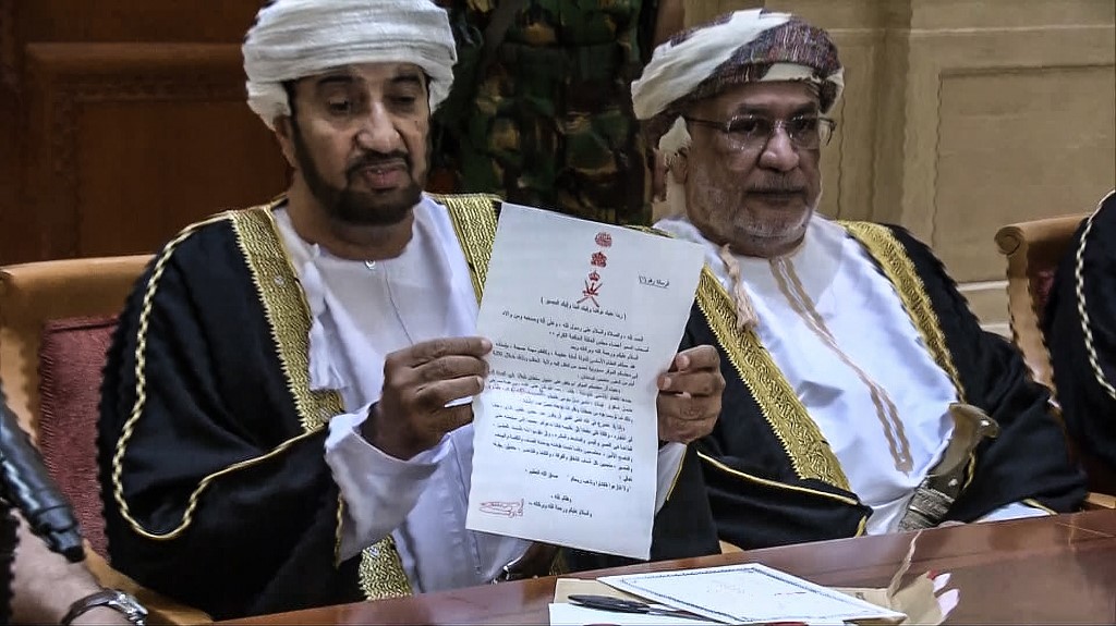 كان معلق التلفزيون العام في السلطنة أشار إلى أن العائلة المالكة قررت فتح رسالة تركها السلطان الراحل وحدد فيها اسم خليفته