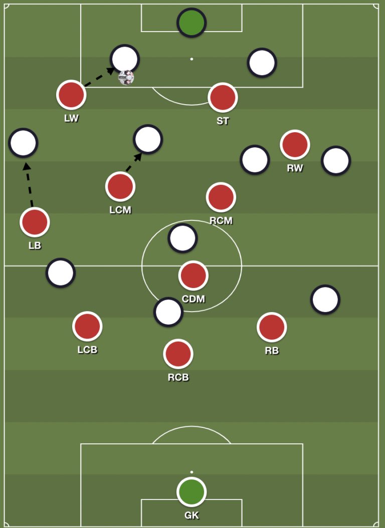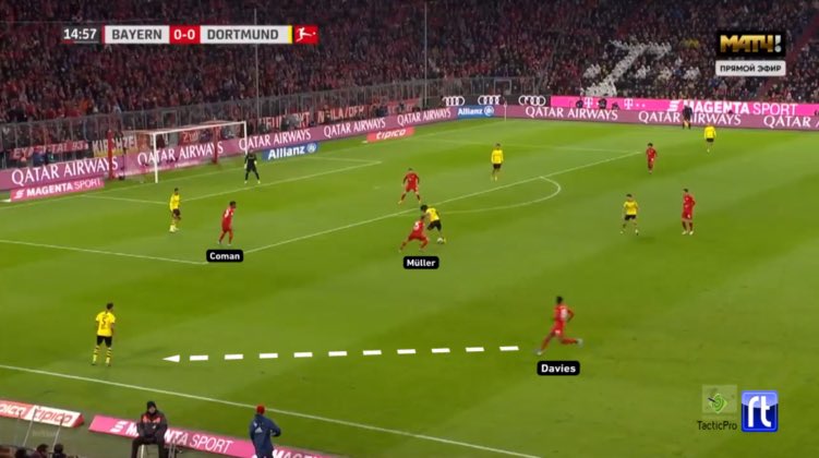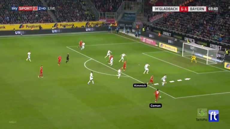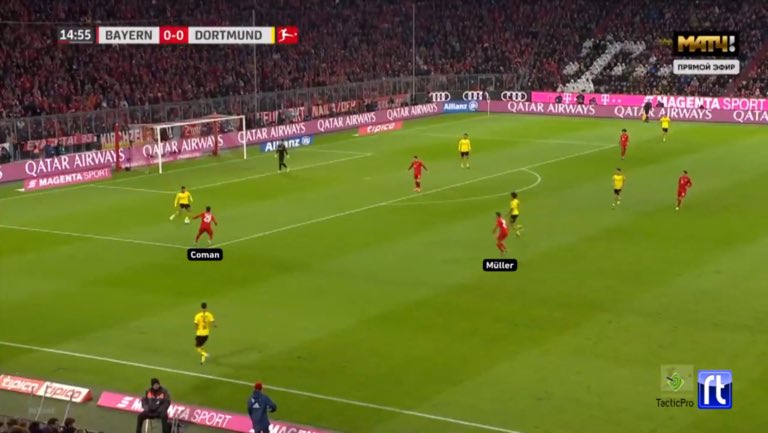 ولكن عندما لم يكن بايرن يتمكن من خلق هذا التفوق ، كان يجب على نوير ارسال إحدى كراته الطولية على رأس احد المهاجمين !
