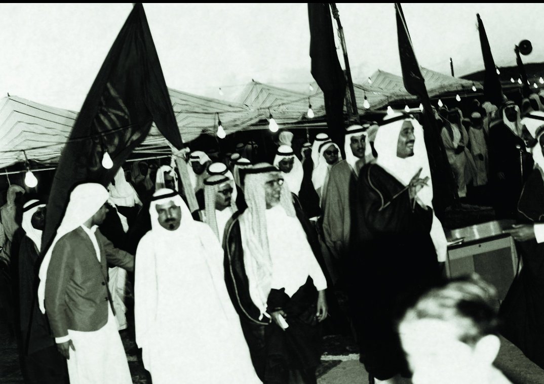يرافقه الملك فهم والملك عبدالله و الأمير سلطان بن عبد العزيز - رحمهم الله