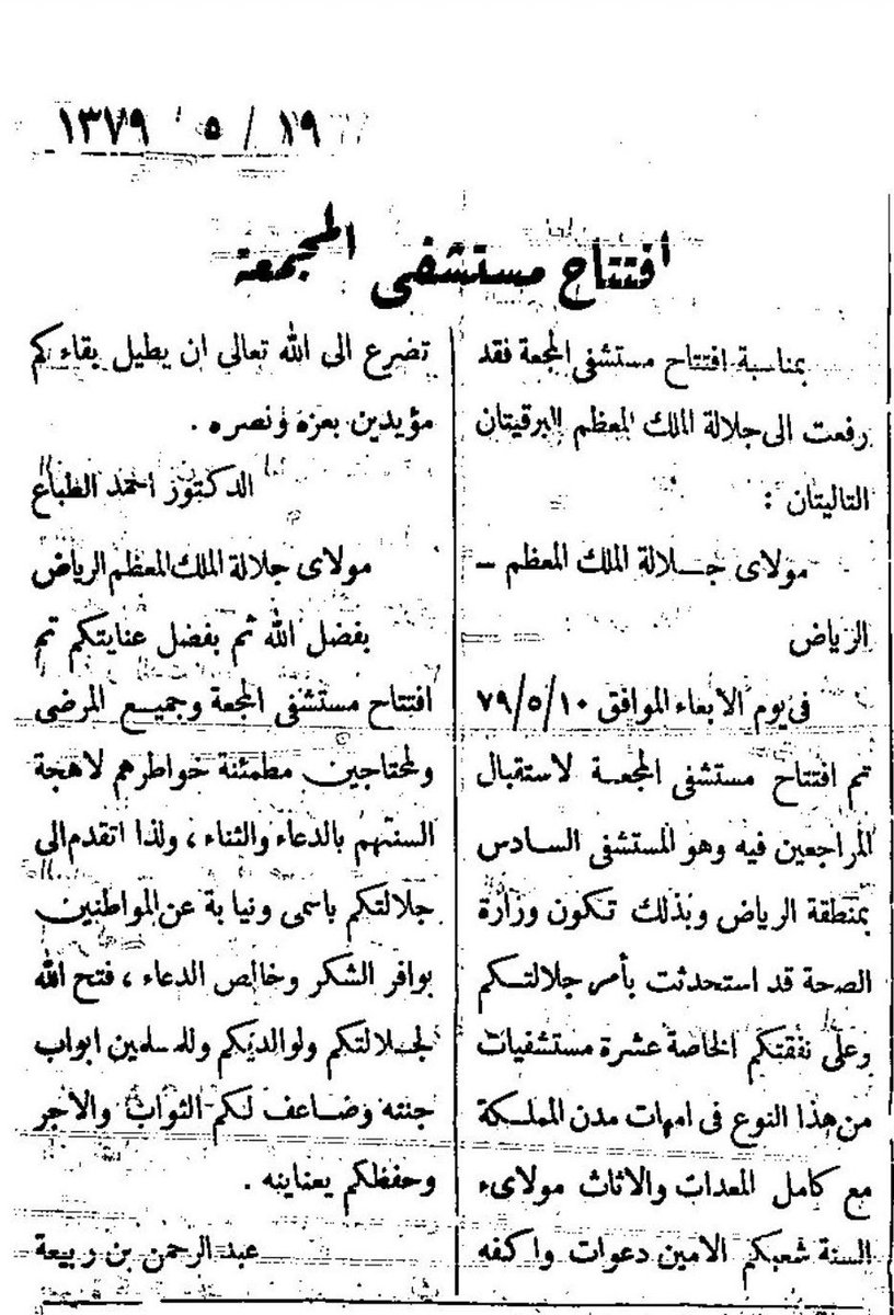مرور ٥١ عاما على زيارة خادم الحرمين الشريفين الملك سلمان بن عبدالعزيز حفظه الله عندما كان أميرا للرياض في جولة تفقدية لمدينة #المجمعة ... جريدة الجزيرة في ٢٥ أبريل ١٩٧٢م