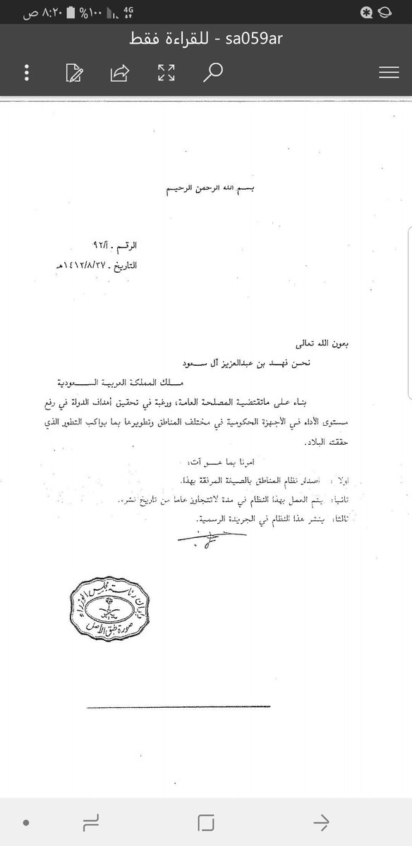 وثيقة تحدد تاريخ توزيع الماء من خلال شبكة مياه في مدينة #المجمعة