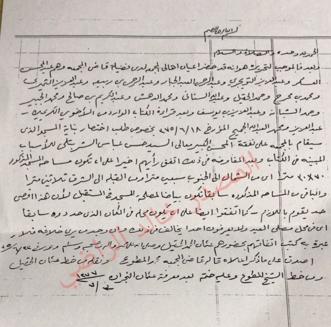 وثيقة لكافة أهالي المجمعة من الملك عبدالعزيز