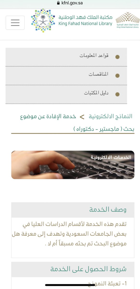 ماجستير/دكتوراه خدمة تقدمها #مكتبة_الملك_فهد_الوطنية لطلاب #الدراسات_العليا للاستفسار عن تسجيل موضوع بحث، هل سبق بحثه أم لا؟
