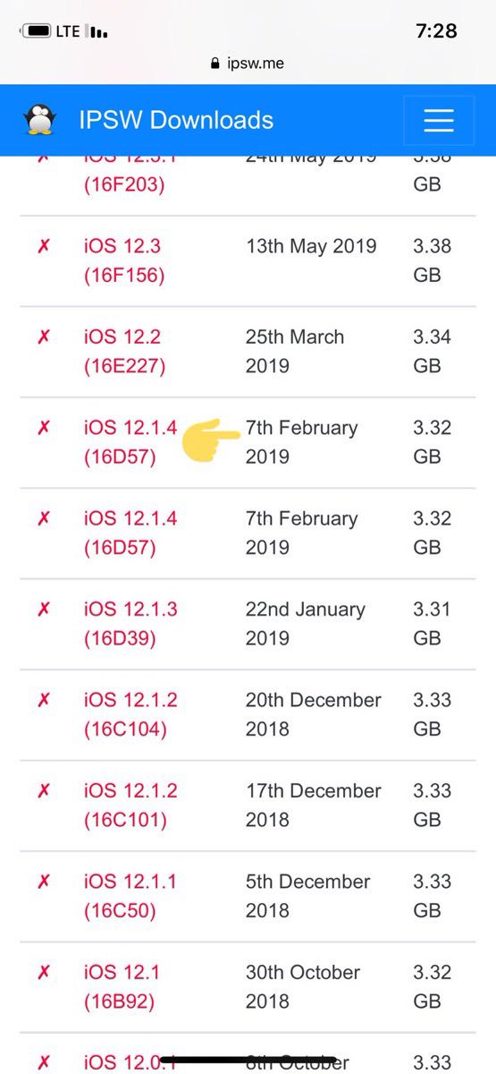 يعني الاصدار الي بالجهاز مابين 13 و 19 فبراير ... قارنتها في موقع ipsw ولقيته