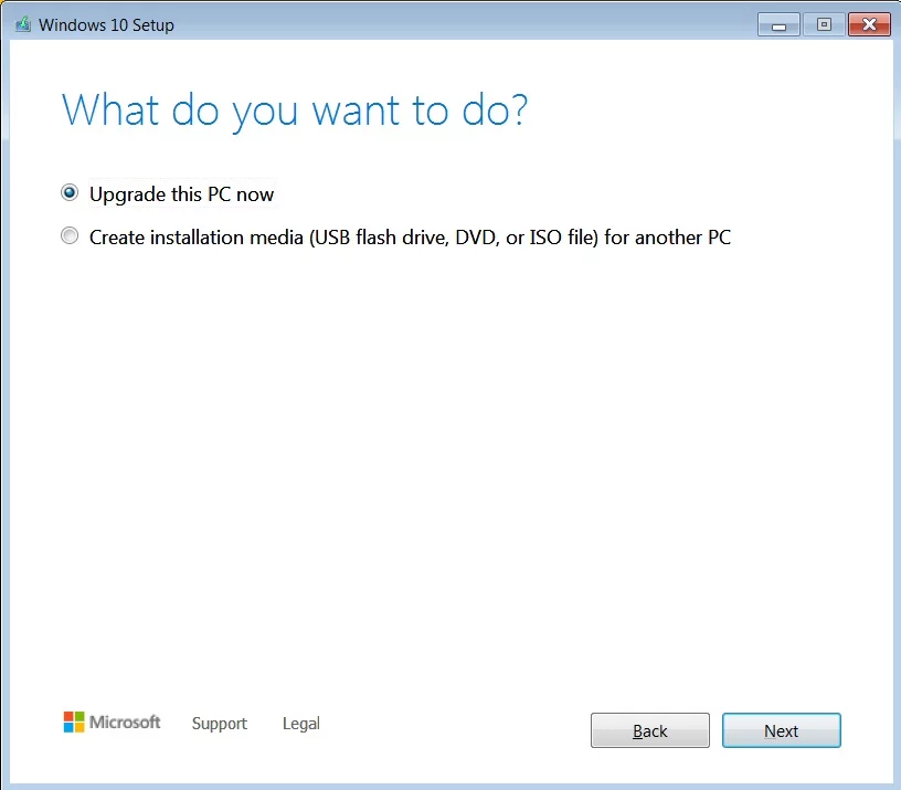 ثم إختر الخيار الأول، للترقية إلى نسخة رقم 10