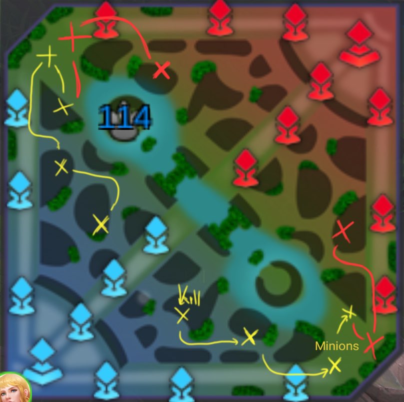 قتل خصم مايعطيك فقط 200 ذهبة، أنت هنا بتضيع على خصمك موجة مينون وكمية خبرة وذهب تصنع فارق بينكم ..