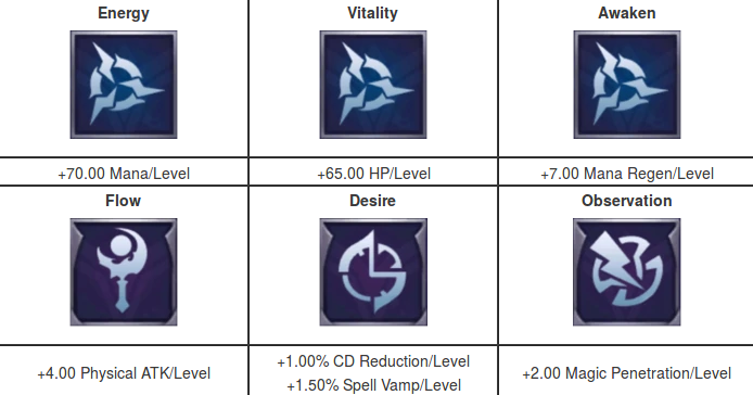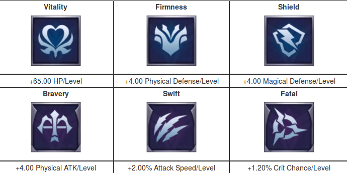 Attack and Defense: زيادة الهجوم الجسدي والسحري بنسبة 0.4% من طاقة الحياة القصوى.