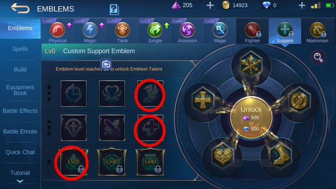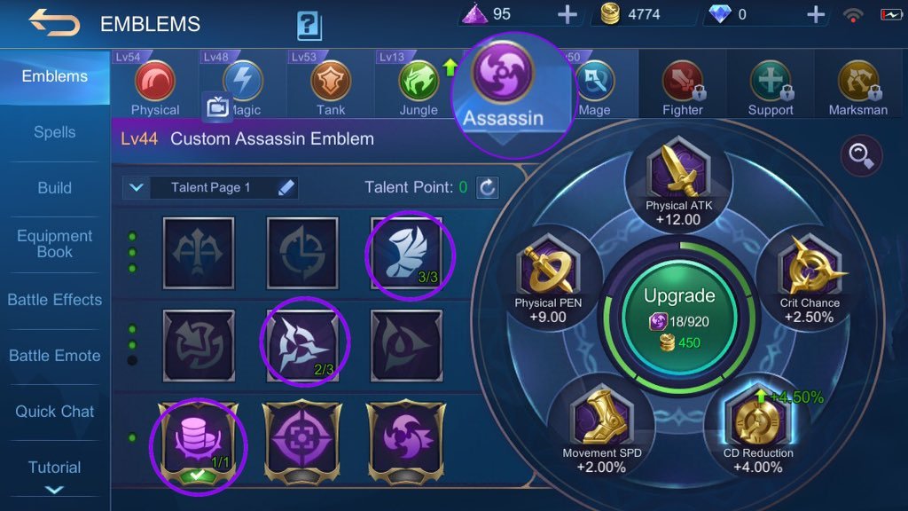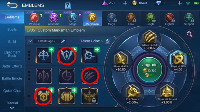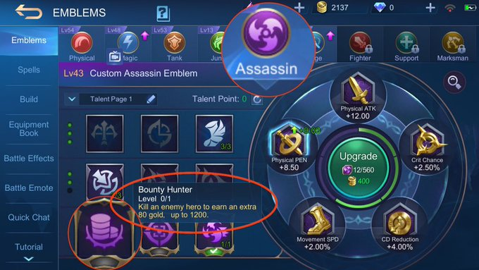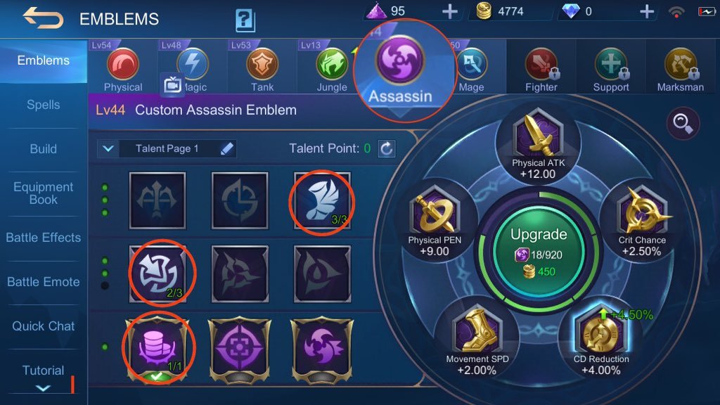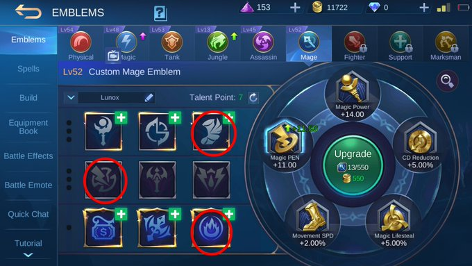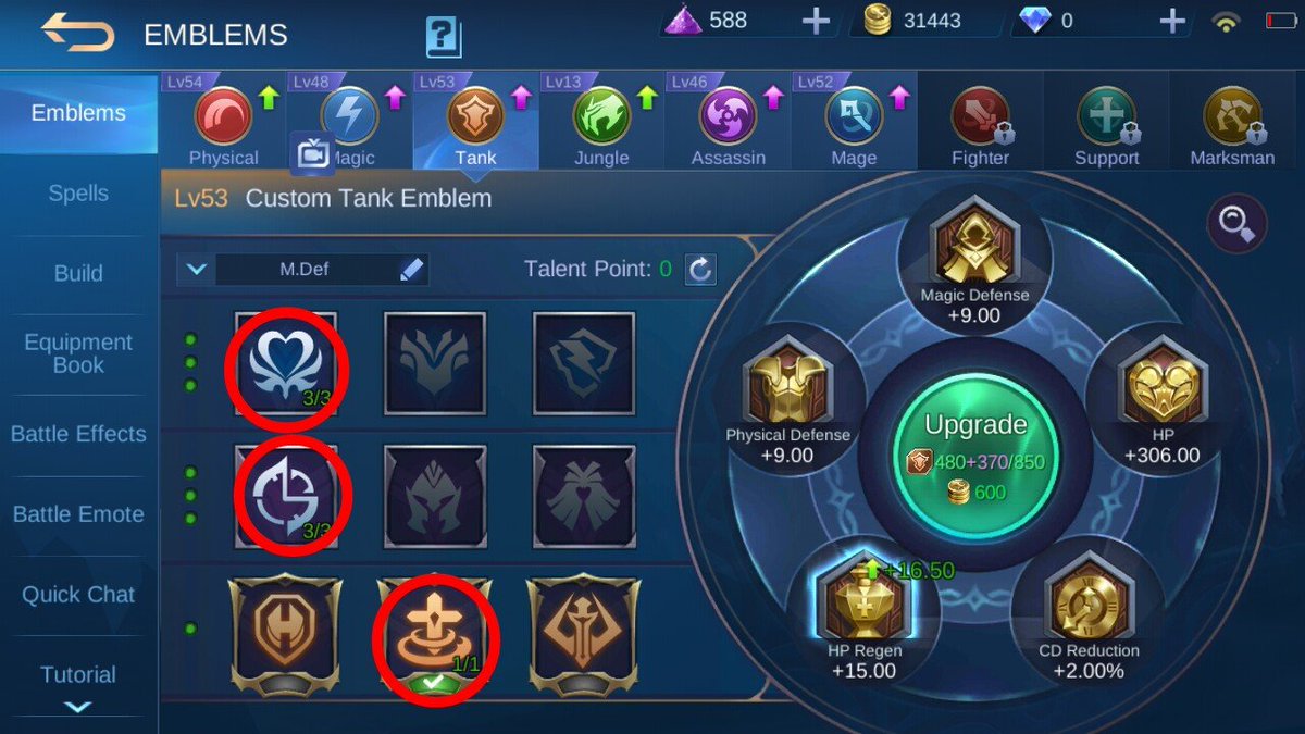 الإمبلم ونقاط المواهب تمنح دفعة صغيرة لسمات الأبطال وميزة في بداية كل قيم تقل تدريجياً أهميتها بعد شراء المعدات، إلا أن الموهبة الثالثة " الأخيرة " يستمر تأثيرها الضخم إلى نهاية القيم، وتلعب دور كبير في حالة تناسب إختيارك مع إمكانيات البطل المستخدم..