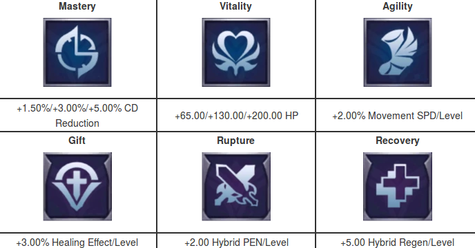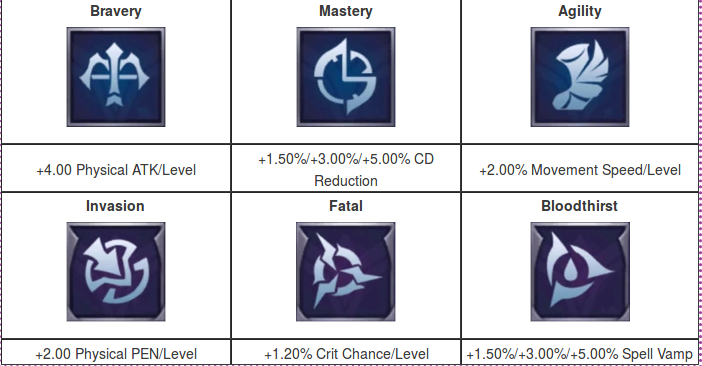 -Impure Rage: في حالة إضرار الخصم بإستخدام المهارات، فإنه يضاف ضرر سحري قيمته مساوية لـ 4% من صحة الهدف القصوى، ويسترجع 3% من شريط المانا.