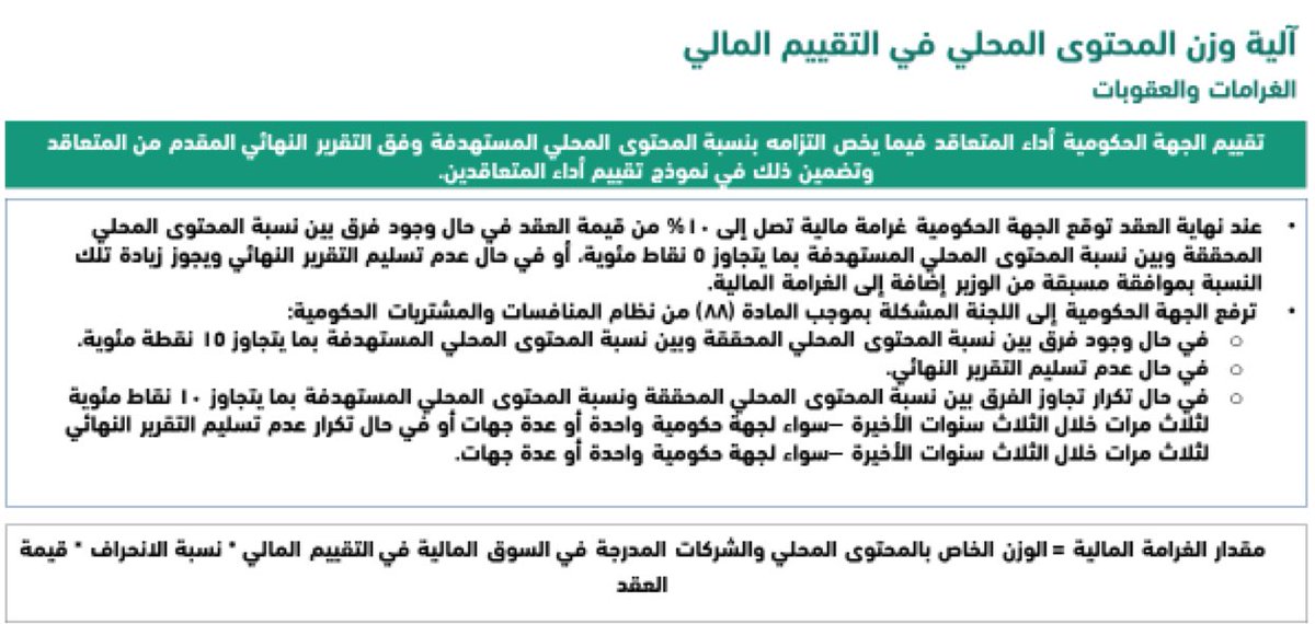 -الشروط والأحكام الخاصة بآليات المحتوى المحلي والمعايير التي تُقيّم بموجبها العروض.