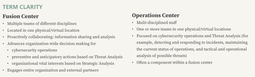 من خلال Fusion Center سوف يكون تواصلهم وتكامل فريق CTI وفريق Cybersecurity ايضا اي division اخر وادارته بشكل جيد سوف ينقل الشركه من وضع reactive الى proactive