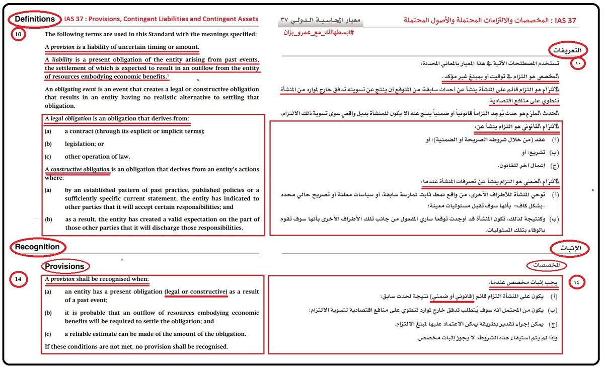 2- أو ينتج من تشريع او حكم قضائي مثل حكم محكمه يلزم المنشأة بدفع تعويضات معينه للغير نتيجة مخالفات أو تجاوزات وقعت فيها المنشأة في الماضي