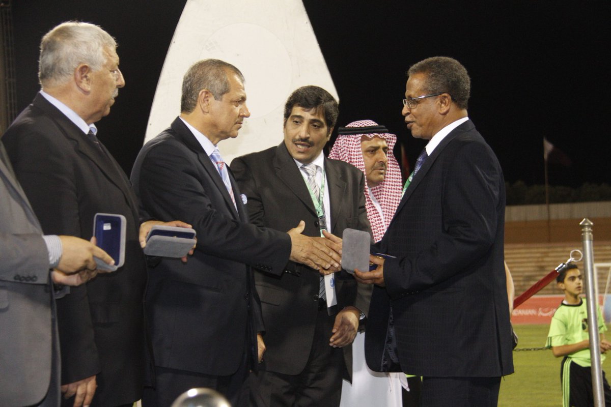 محمد روراوة النائب الأول لسمو الأمير عبد العزيز بن تركي الفيصل رئيس الأتحاد العربي لكرة القدم و الأستاذ هاشم ممثل معهد اعداد القادة بالرياض، البروف محمد الخير الشيخ مؤسس فريق أمل السودان الذي وجد كل الأهتمام منه وإنشاء فريق كنا نتمنى يكون نواة لمنتخب السودان الأول 👇