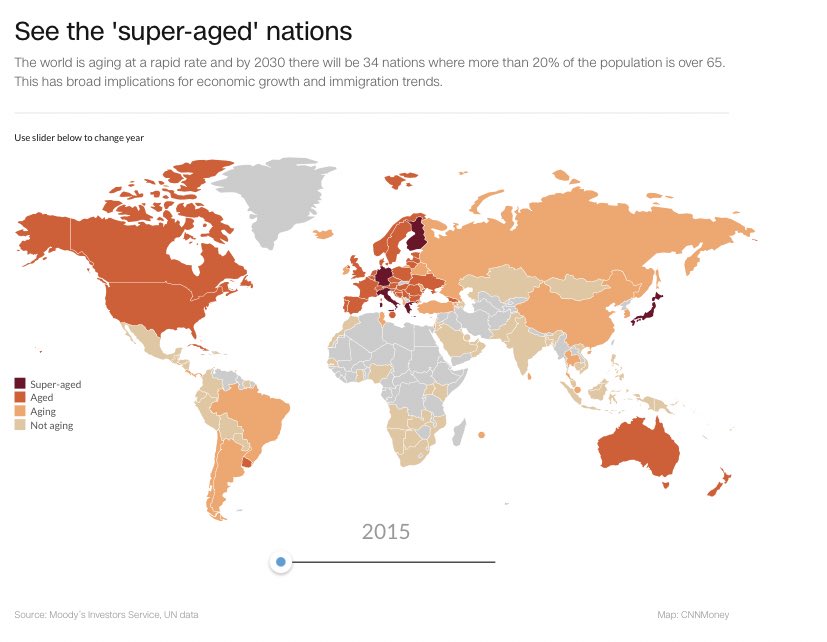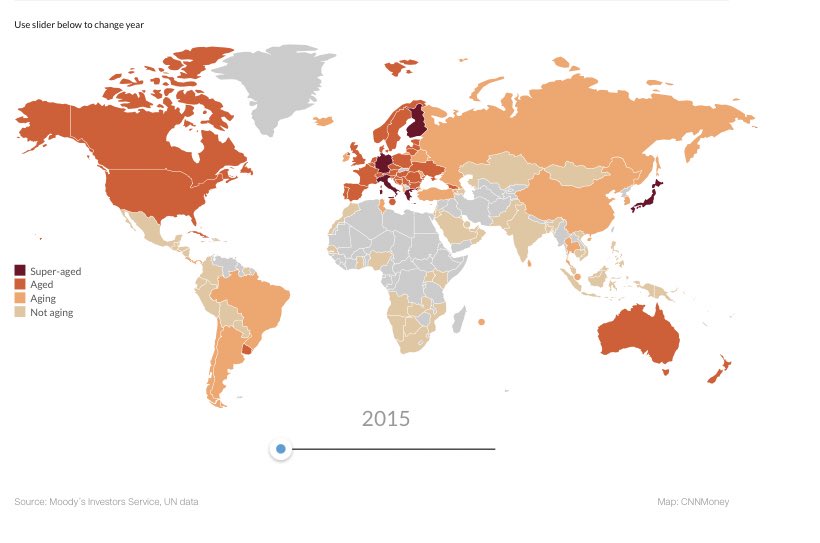٢/حيث سيصل عدد المسنين في ألمانيا إلى ما يقرب من ثلث إجمالي السكان بحلول٢٠٥٠. بالرغم من أن التعداد السكاني لألمانيا قرابة ٨٣ مليون إلا أن عدد المواليد مثلاً في ٢٠١٧ هو ٧٨٥ ألف تقريباً. وهذا أحد أسباب فتح أبوابها للمهاجرين.