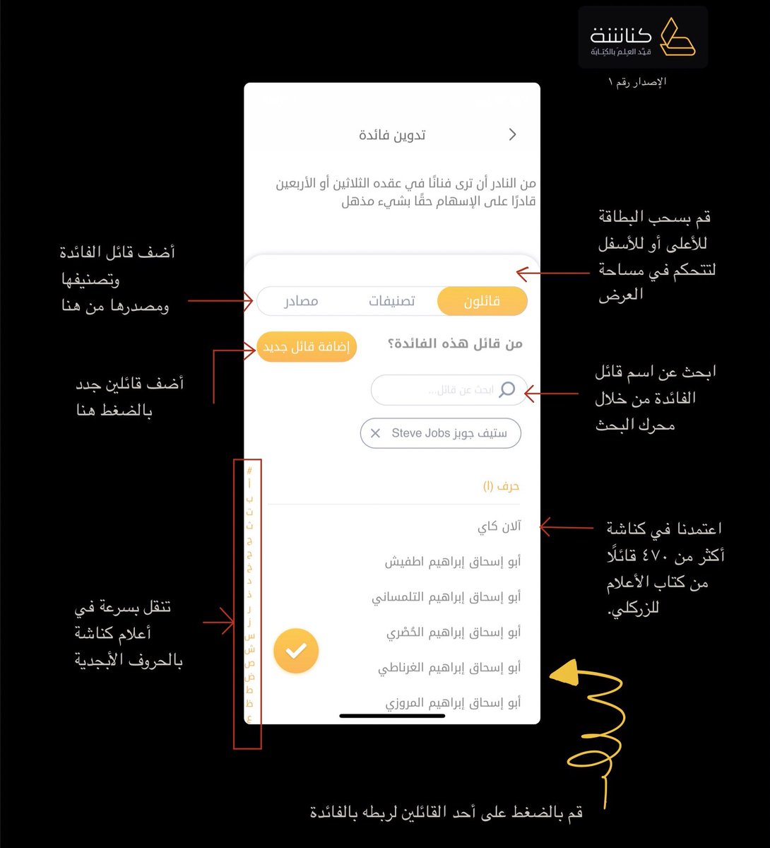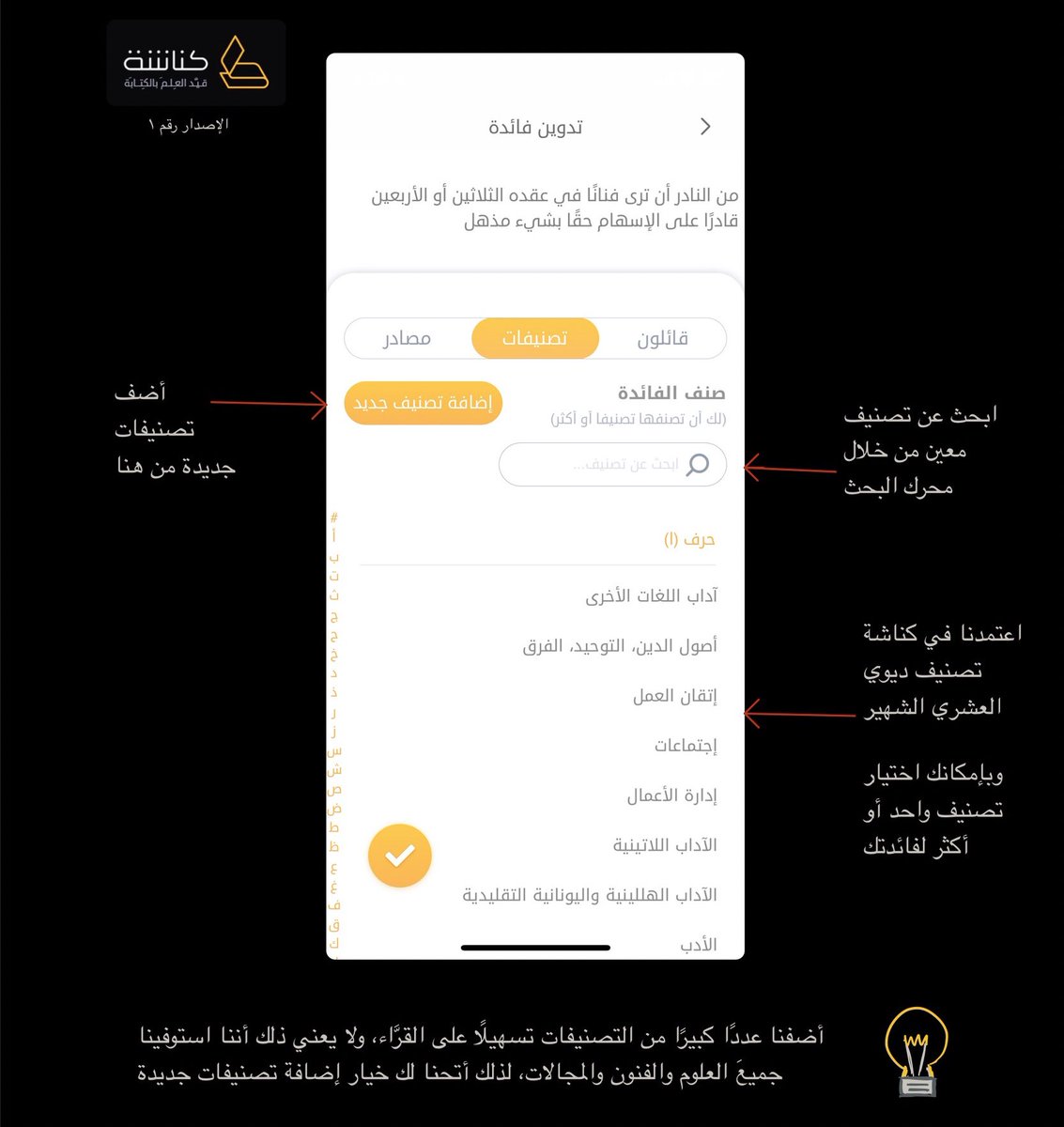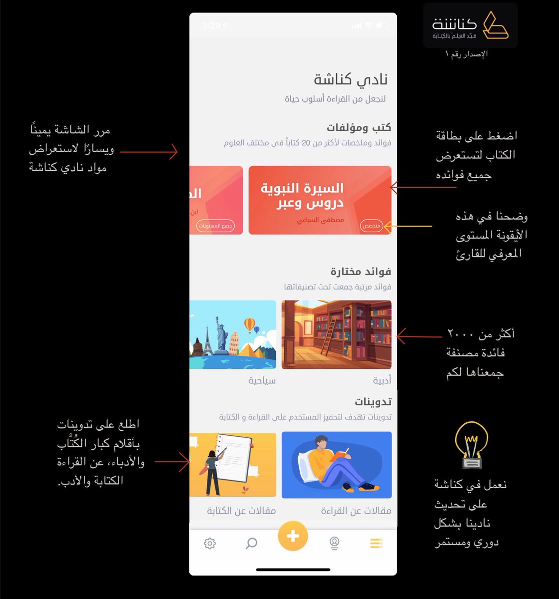 #كناشة ليس تطبيقًا لكتابة الملاحظات العامة، وإنما هو خاص بتدوين الفوائد والملخصات والاقتباسات سواءً من: