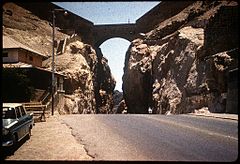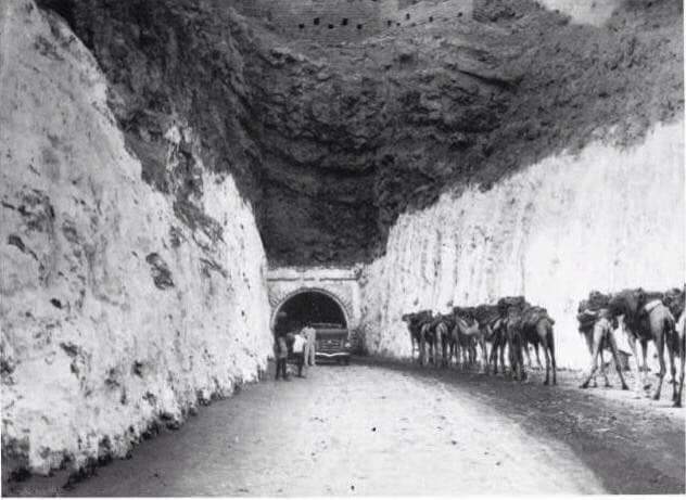 لم يكن لها طريق إلى البر إلا للرّجل لمن ركب ظهر الجبل فقطع في الجبل باب مبلغ عرض الجبل حتى سلكه الدواب والجمال والمحامل والمحفات.