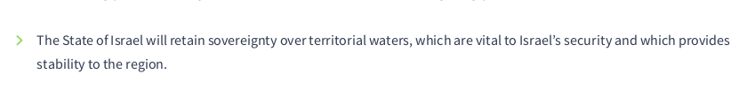ستحتفظ إسرائيل بالسيادة على المياه الإقليمية، التي تعتبر حيوية لأمن إسرائيل
