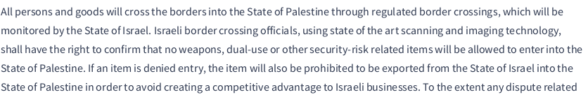 أيا كان الطرف الذي سيوقع اتفاقية الحل النهائي مع إسرائيل سواء كان السلطة الفلسطينية أو جهة أخرى مقبولة إسرئيليا عليها أن تضمن خلو غزو من اﻷسلحة