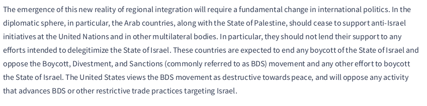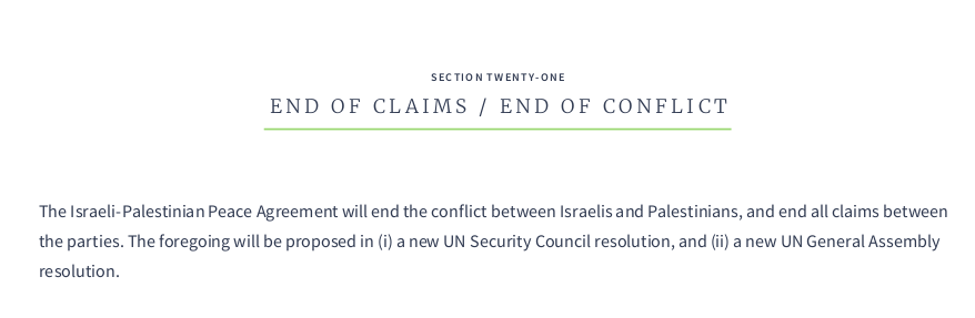 مشروع #صفقة_القرن لا يعتبر قرارت مجلس اﻷمن واﻷمم المتحدة ستؤدي إلى سلام لكنه يدعو في حال التوقيع والاعتراف المتبادل بين الفلسطينيين وإسرئيل دولة لليهود، أن يقر مجلس اﻷمن واﻷمم المتحدة بذلك