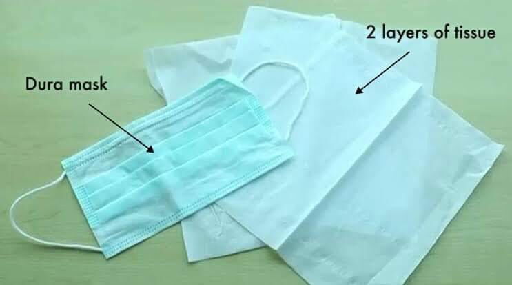 The Dura mask with two layers of tissue in between is very comfortable to wear with almost the same filter efficiency as the much more expensive and hard to find N95 mask.