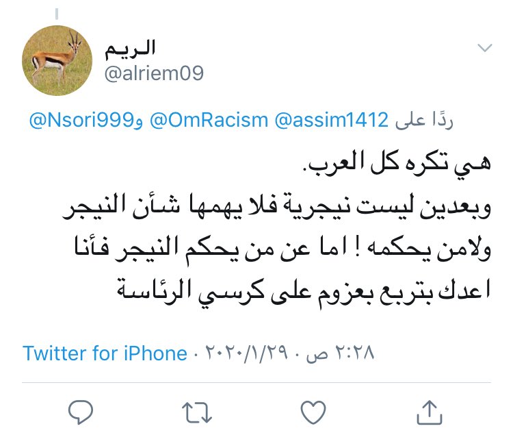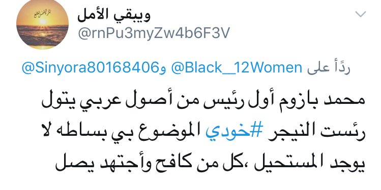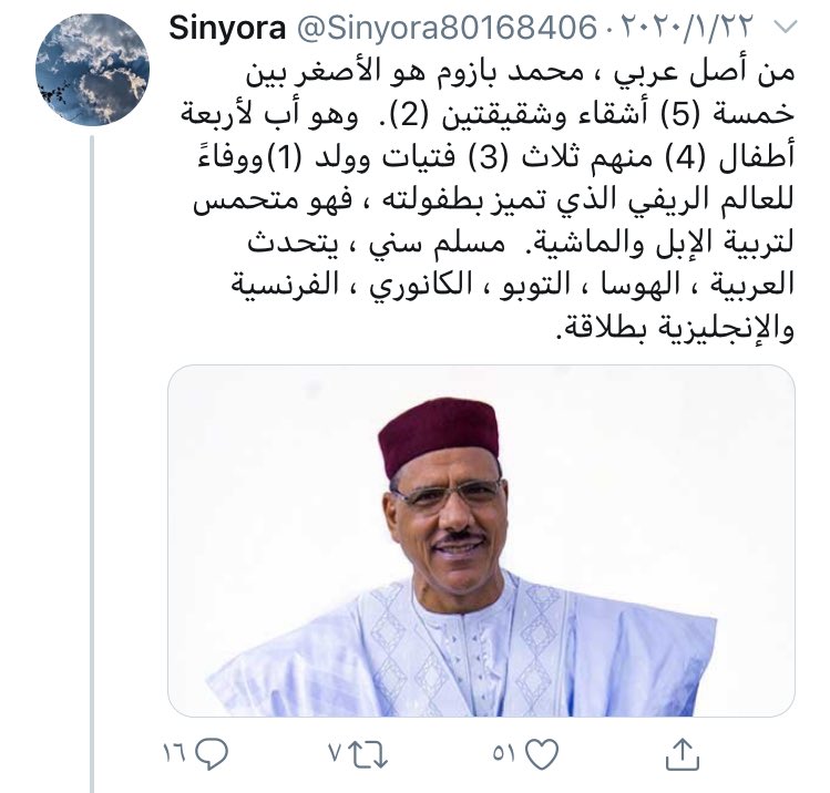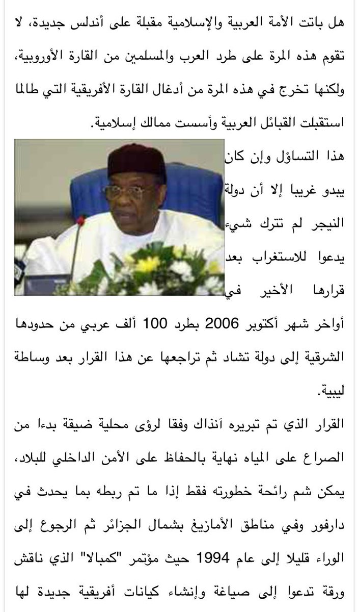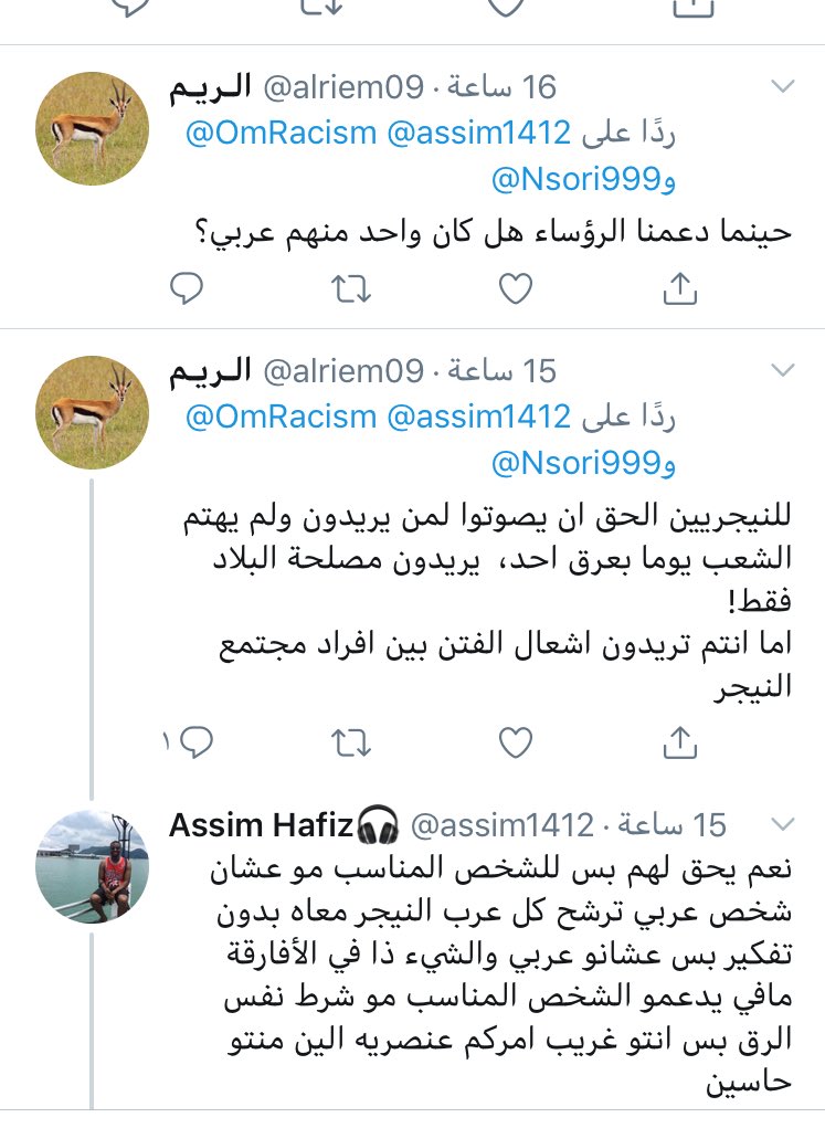 قبل كم يوم كتبت ثريد اعتراضاً على منشور يتم الترويج فيه تسليم رئاسة جمهورية #النيجر لرجل عربي طبعاً المنشور هذا طبعاً مستعربي #النيجر اللذين يمارسون فوقيتهم وعنصريتهم في القارة #الافريقية بينما دول الخليج العربية لاتعترف بهم