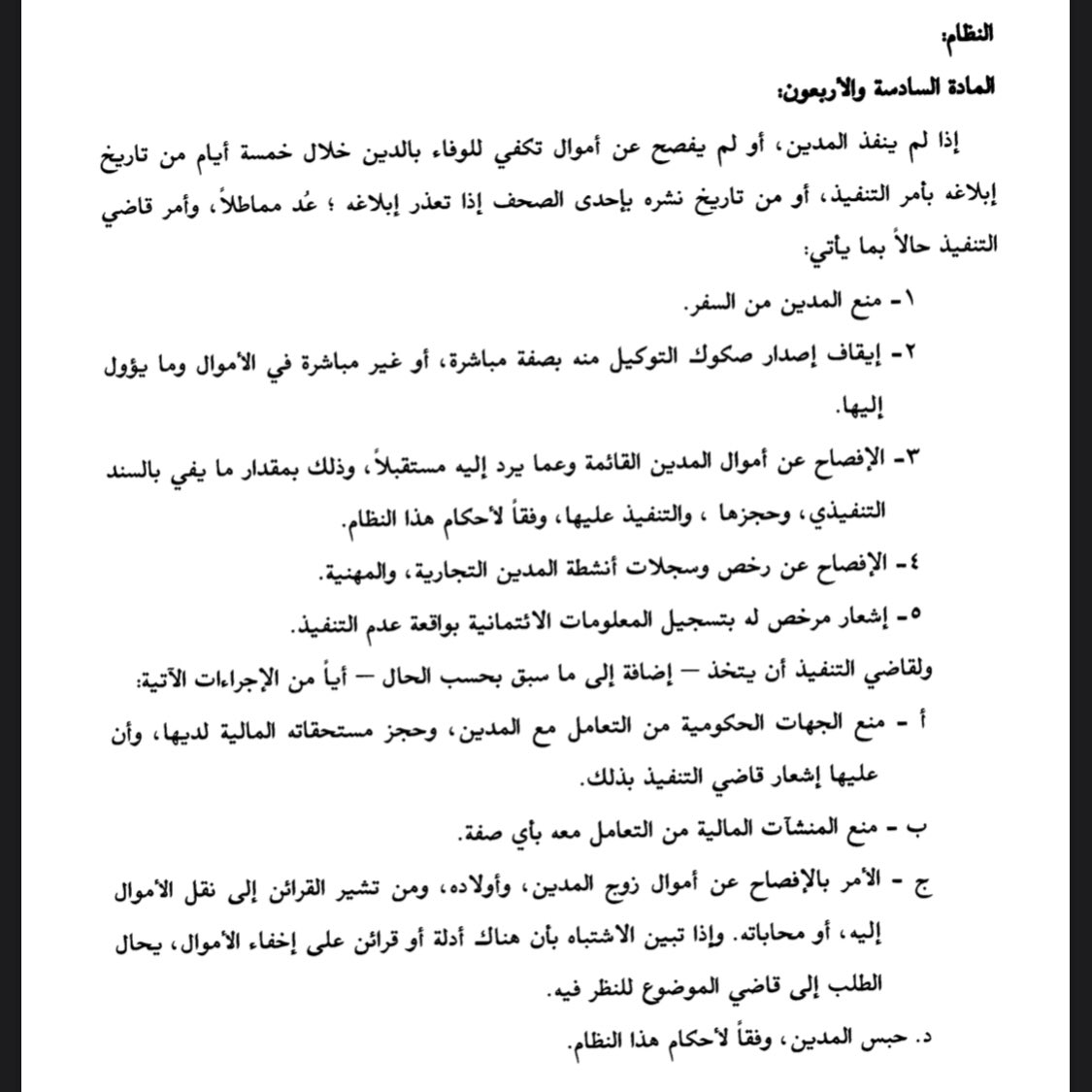 ٣- تم إضافة مدة ٣ أشهر بعد تطبيق المادة ٤٦ من #نظام_التنفيذ قبل تنفيذ الحبس الجبري على الديون فوق مليون ريال