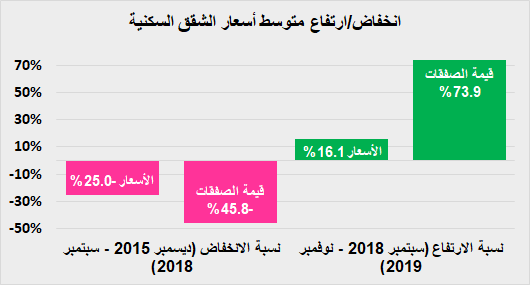 أمام هذا الضخ غير المسبوق في تاريخ السوق العقارية للتمويل العقاري والمتوقع استمراره هذا العام، وأمام توقف استكمال رسوم الأراضي التي لا زالت عند مرحلتها الأولى منذ 4 سنوات، وبعد موجة ركود طويلة للسوق وانخفاض الأسعار بنسبة وصلت إلى 41% كان طبيعياً أن تعود الأسعار للارتفاع