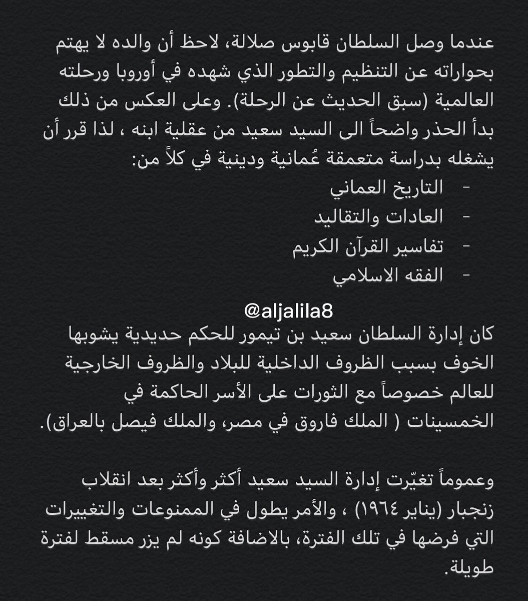 وجهة نظر شخصية، تبادل المهام بين الاب والابن أسهل للسلطان سعيد لذلك كان أكثر تقبلاً، خصوصاً مع كثرة الحديث عن شبه محاولات اغتيال وانقلاب من الداخل والخارج في الستينات.