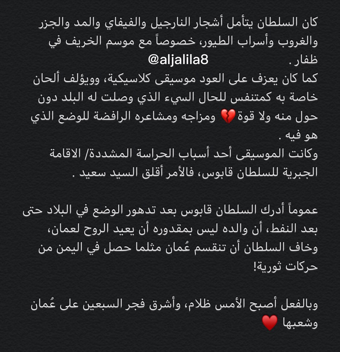 رحم الله السلطان قابوس وعائلته جميعهم ، نسأل الله لهم اللُقيا في الفردوس🙏🏼🌿