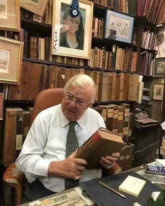 وكان يجلس بهذه المكتبه كل يوم ويقول إن نجوي زوجته كانت تجلس بها كل يوم لذلك توجد روحها بها ورفض بيعها !