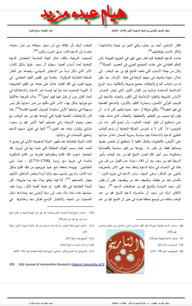 ✍٣/دور الدولة العثمانية في الدولةالسعودية الأولى: