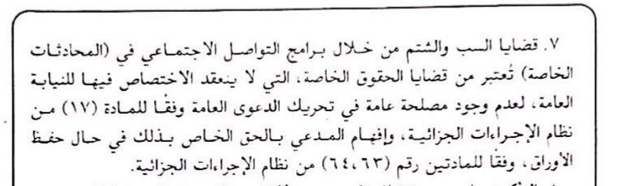 قضايا السب والشتم من خلال برامج التواصل الاجتماعي في المحادثات الخاصة تعتبر من قضايا الحقوق الخاصة التي لاينعقد الاختصاص فيها للنيابة العامة لعدم وجود مصلحة عامة في تحريك الدعوى العامة ..