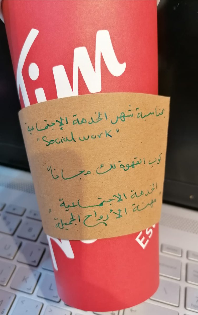 @Sociable_sa @ASW_2011 بمناسبة شهر الخدمة الاجتماعية،، ،ساهم بعمل بسيط لتعريف الناس بمهنة الخدمة الاجتماعية،، ،هذه إحدى الأساليب ،،،كوب قهوة مجاني