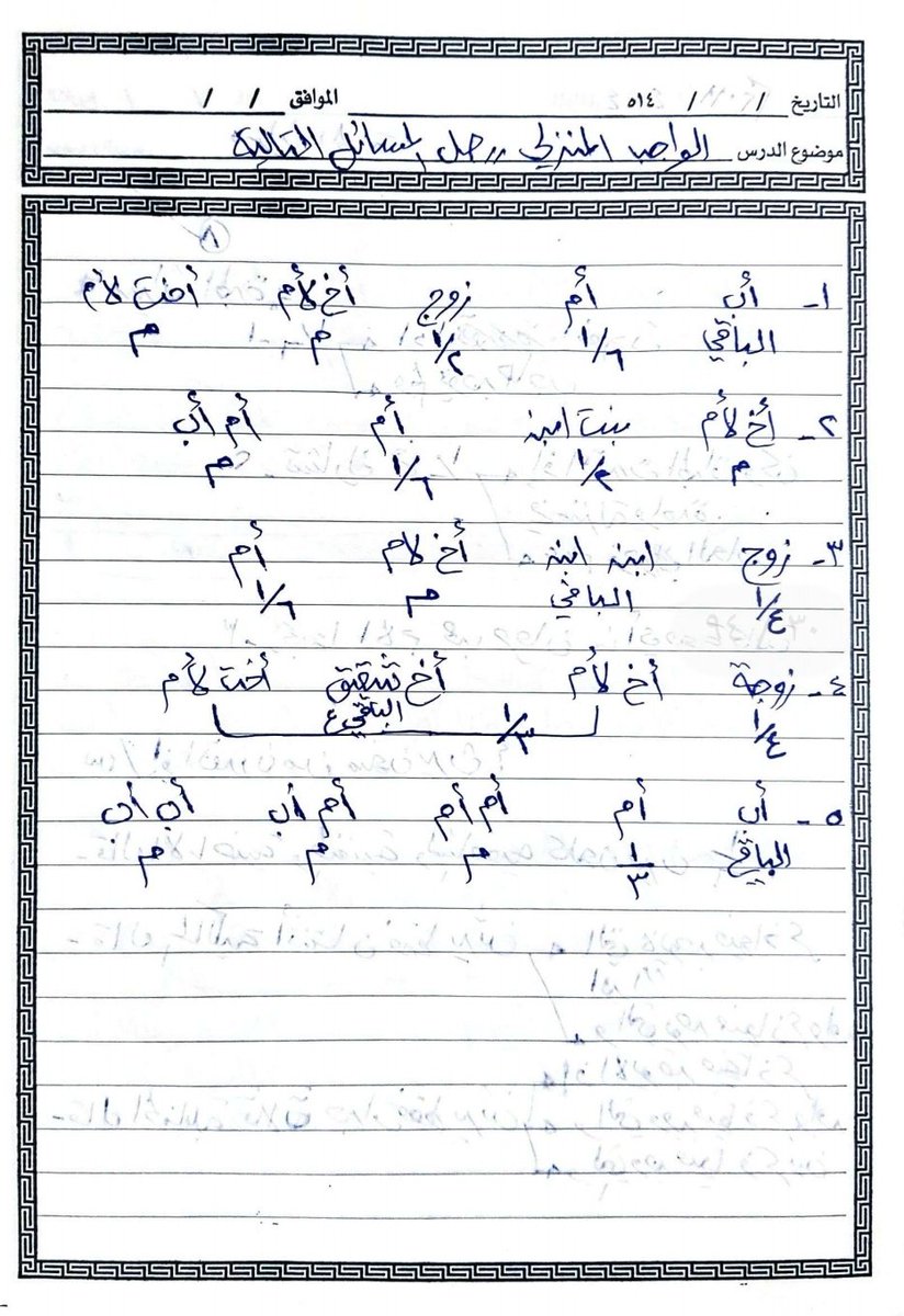 -بنت. -بنت ابن. -5أخوات لاب