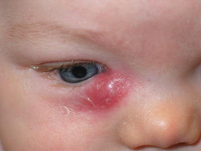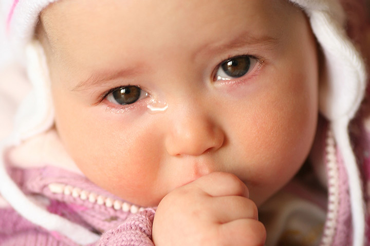 في الاطفال حديثي الولادة : يكون سبب زيادة دمع العين (بدون احمرار مصاحب) غالباً بسبب وجود عائق او انسداد او ضيق في قنوات الصرف الدمعي: مثل انسداد القناة الكيسية أو الأنفية او وجود عيب خلقي في نشأة النقطة التصريفية الدمعية وملحقاتها.