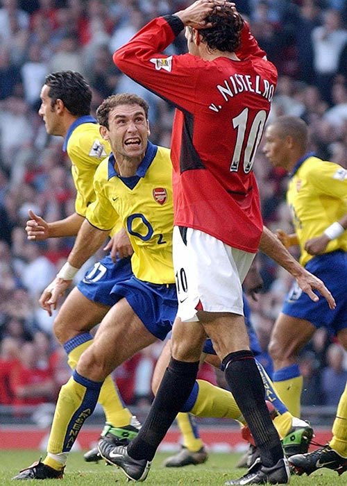 هنا لقطة الطرد على باتريك فييرا " الظالمه " وركلة الجزاء المشكوك بأمرها ، وردة فعل لاعبين ارسنال على نيستلروي بعد ضياع الركله وحديث اللاعبين اللذين كانوا موجودين في ذلك المباراه عن ماحدث في المباراه " مارتن كيون ، كامبل ، فيل نيفيل ، سكولز "