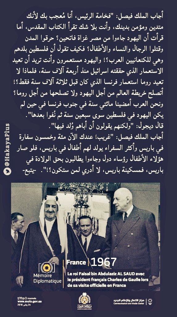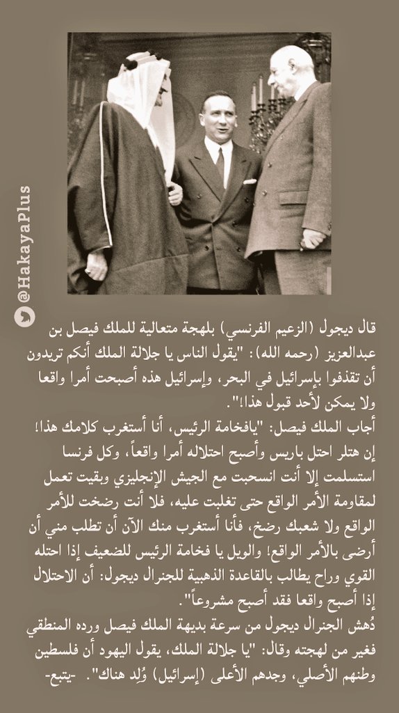 أولا: #قصة الملك فيصل وَديجول فرنسا.